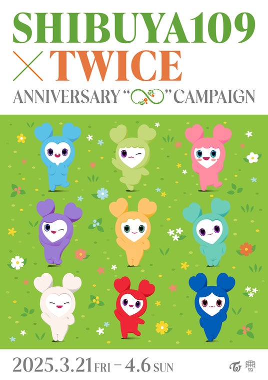 株式会社SHIBUYA109エンタテイメント(本社:東京都渋谷区、社長:石川あゆみ)は、東京・渋谷で運営する「SHIBUYA109渋谷店」にて、2025年3月21日(金) ~ 4月6日(日)の期間、9人組ガールズグループ「TWICE」(トゥワイス)のファンクラブ開設8周年を記念したコラボレーション企画『SHIBUYA109 × TWICE ANNIVERSARY "∞" CAMPAIGN』を開催いたします。