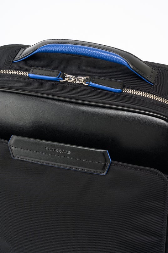 サムソナイトのミニマリズムと革新的な機能性搭載した現コレクション「エヴォアZ」の115周年モデル"レトロブルー"は、PCフィルム加工による深みのあるブルーを基調としたレザー調が特徴で、内装は外観にあわせたシックなダークトーンのペイズリー柄のデザインとなっています。