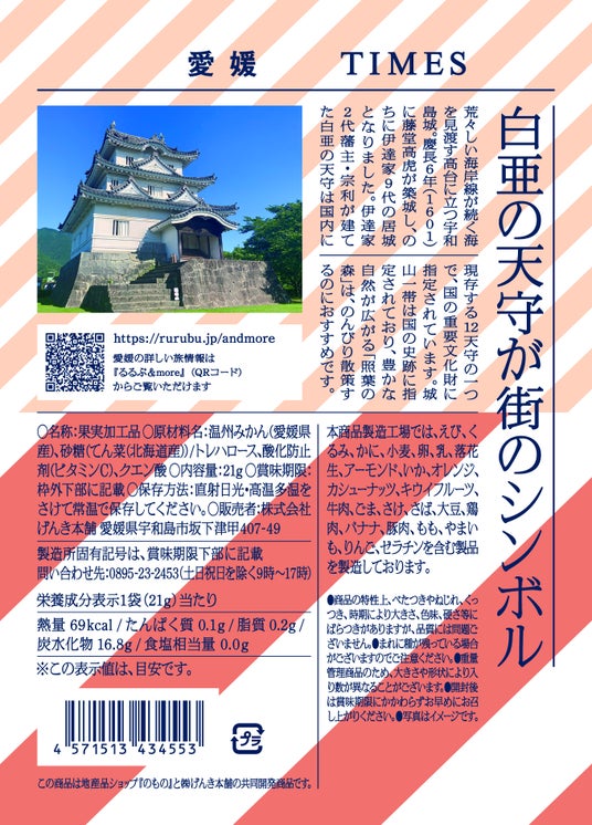 かたちにした小袋菓子商品です。今回、愛媛県および香川県の素材を使用した商品を初めて