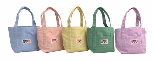 ▲カラーごとに異なるコラボネームがデザインされたコーデュロイバッグ5色展開
