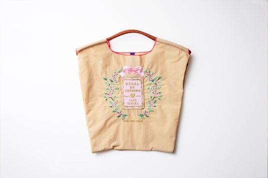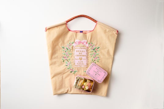 Ball&Chainのエコバッグは耐久性と撥水性に優れたデザイン性の高い人気のショッピングバッグです。今回のコラボバッグでは、カフェタナカのメインブランドである「レガル・ド・チヒロ」をイメージしたデザインが、美しい刺繍によって華やかに表現されています。