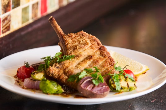 ジューシーで濃厚な骨つきラム肉を、きめ細かなパン粉と粉チーズの衣でさくっと香ばしいミラノ風カツレツに。旬の春野菜とともにハニーマスタードでお召し上がりください。
