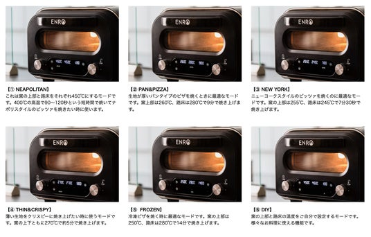 ピザの種類によって適正温度は異なります。そのため「電気式窯焼マスター」には6つのモードがあります。火力の調整は80~450℃の範囲で可能です。