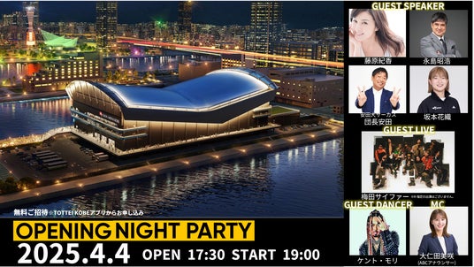 このたび、4月4日アリーナ開業日のこけら落としイベント『Opening Night Party』の追加出演者が決定しましたのでお知らせします。あわせて、神戸にお住まいの方・神戸を好きな人の無料ご招待の追加席の応募を増枠し、2次申込アプリ受付を本日より開始します。神戸の門出を祝う初日イベントにふるってご応募ください。
