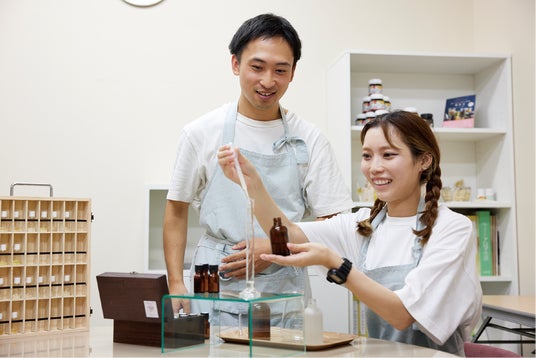 【生活の木】五感で感じる工場見学&オリジナルリードディフューザー作り部屋に香りを手軽に広げるためのアイテム、リードディフューザー作り。フローラル系、シトラス系などから選び、自分好みのオリジナルの香りを完成させる。普段は非公開の工場内見学とハーブドリンクの試飲、アウトレット価格で商品が購入できる特典付き。