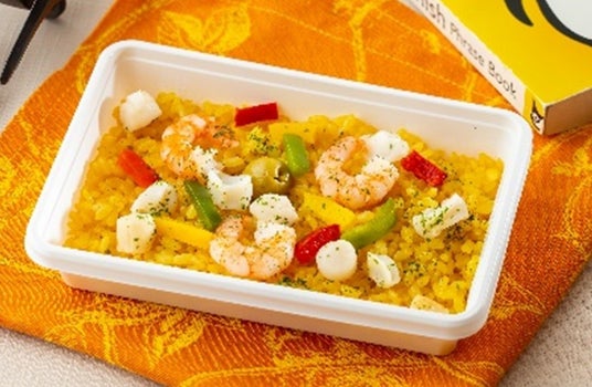 2.エビの柚子胡椒クリームソース×1食柚子胡椒がアクセントのクリームソースをサフランライスにたっぷりかけたドリア風。