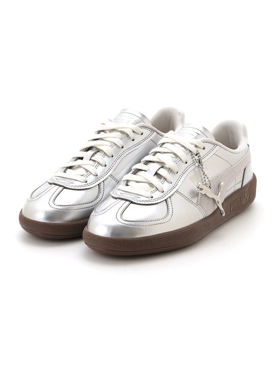 emmi10周年のアニバーサリーを意識したメタリックベースに、グロスフィニッシュの白ロゴ、そして光沢のあるライニングを採用。パンと張ったメタリックの中に毛足の短いスエードを使ったことで、コーディネートに取り入れやすいニュアンスをプラス。表情に変化のつく3色のシューレースつきで、色選びも楽しめる。