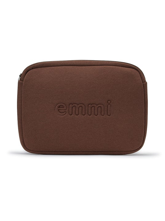 エンボス加工を施した立体感のあるemmiロゴがポイントのPC・タブレットケース。13インチのPCまで対応可能なサイズ感。タブレットとノートを入れてドキュメントケースとしても使っていただけます。背面にはエコバッグと同様に10ロゴもプリントされており、スペシャル感たっぷりのアイテムです。