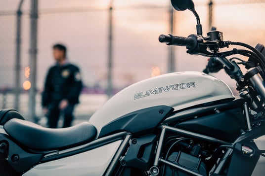 独自のロー&ロングフォルムでひときわ目を引くクールなスタイルで、登場以来熱いご支持をいただいているELIMINATOR。モーターサイクルが持つ普遍的なデザインを継承しながら、タンクからテールにかけて水平基調の造形が、そのフォルムを際立たせます。カワサキミドルクラスで最も低いシートに腰を下ろすと、ハンドルは腕を自然に伸ばした位置に、ステップは膝が適度に曲がる位置に用意されています。398cm³並列2気筒エンジンは、低速域での豊かなトルクによる良好なコントロール性を実現。高速走行時には、力強いパワーとリニアなレスポンスを発揮します。大排気量モデル並の存在感のある車体は、軽量化を追求。扱いやすさ・安心感を高めてライディングのストレスを軽減。モダンな雰囲気を添えるコンパクトな丸形オールデジタル液晶インストゥルメントパネルと、カワサキ同クラス唯一のETC2.0車載器キットを標準装備するなど、日常使いから通勤・通学、ツーリングまで、爽快なライディングの世界にライダーを導きます。