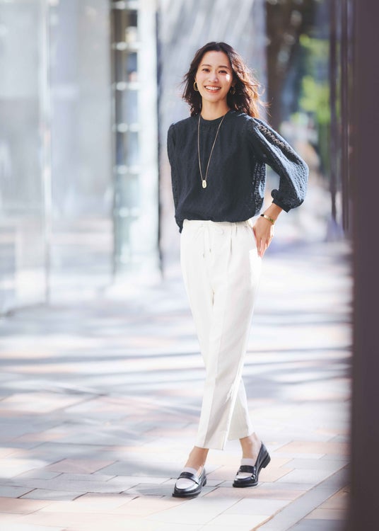 Blouse ¥18,920 Pants ¥17,930 Necklace¥6,050 Shoes ¥14,960 ※全て税込価格