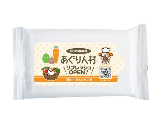 リフレッシュオープンを記念して4月3日(木)~6日(日)にイベントを開催します。各日先着1,000名の方に、ウェットティッシュをプレゼントするとともに、5日(土)、6日(日)は農産物直売所で3,000円以上お買い上げのお客さま(各日先着200名)に、NEXCO中日本オリジナルキャラクター みちまるくん(あぐりん村バージョン)がデザインされたトートバックをプレゼントさせていただきます。