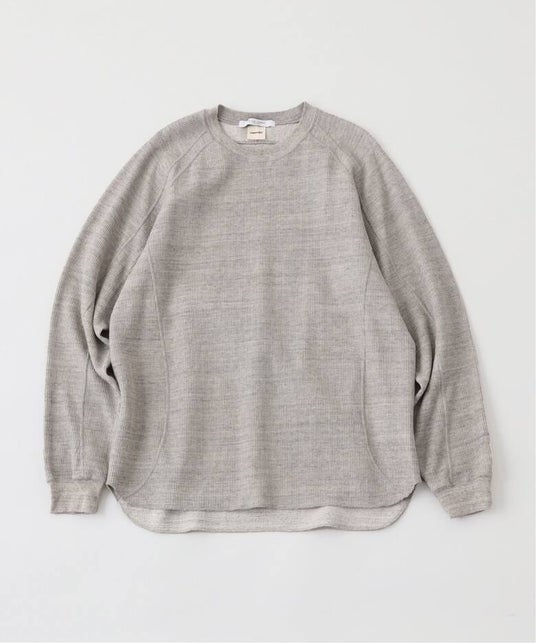 極上のコットンを使用し、自然な色味と柔らかな肌触りが特徴のワッフルロングスリーブTシャツです。シンプルながらも洗練されたデザインで、日常のカジュアルスタイルをワンランクアップさせます。シンプルながらも洗練されたデザインで、あらゆるシーンで活躍する一枚です。