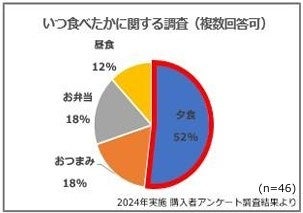 2024年に当社が実施した購入者アンケートでは、イカ味のさといも"イカさと"を「いつ食べたか」に関して、半数以上の方が「夕食に食べた」と回答しました。家族の夕食のおかずとして利用するなら、家族でシェアしても満足できる量が必要なはず。下処理の手間がかかる「里芋」を、より満足感のある量目で手軽に毎日の食卓の一品に加えていただきたいという思いで、お徳用イカ味のさといも"イカさと"を新発売いたします。物価高騰が続く中で、消費者の節約志向は益々強まりを見せています。当社は、開けてそのままおかずやおつまみに使える袋入り惣菜シリーズとして「ひとくちサイズのおかず」シリーズの強化を行ってまいります。