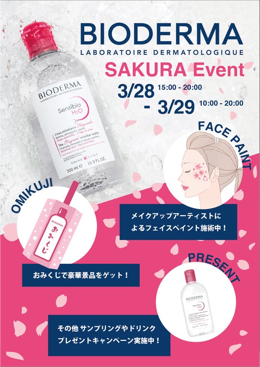 敏感肌スキンケアブランド 「ビオデルマ」が、サンシビオ H20発売30周年を記念し、桜満開の中目黒で、SAKURA Event を開催!サンシビオ H2Oをサンプリング、桜フェイスペイント体験も!