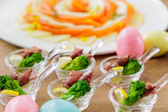 ホタルイカと菜の花のマリネ レモン風味/鰆のタタキ 菜の花を添えて/5種類の豆とアボカドのサラダ/筍のバジル風味 たっぷりの黒胡椒とパルメザンチーズ/玉ねぎとしらすのキッシュ スナップエンドウ豆を飾って/新じゃがのサラダ ヨーグルトのソース(アルザス風ビベレスカ)/スモークサーモン ミモザ風 ディルソースを添えて/玉子サンド/イースターエッグ/筍ごはん/春キャベツのブイヨンスープ