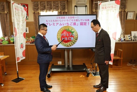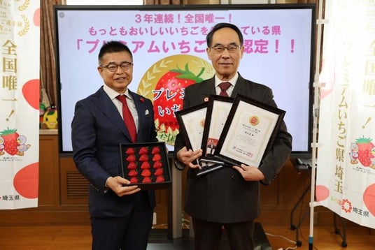 このたび、埼玉県は(一社)日本野菜ソムリエ協会から最もおいしいいちごを生産する「プレミアムいちご県」に認定され、令和7年3月17日に認定証が授与されました。