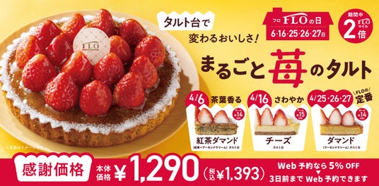 こちらの直径約14~15cmのホールタルトを、FLOの日限定価格・税込1,393円でご提供。大変お得にお買い求めいただけます。