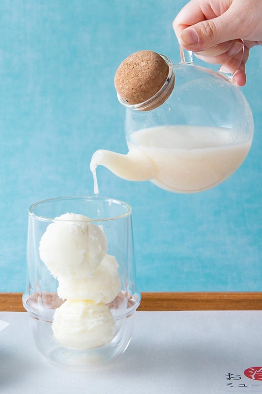 ミルクベースのアイスクリームに甘酒を注ぎ、かき混ぜて仕上げる新感覚シェイク。