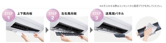 - 業界初※1! 外せる送風路パネルとタイマー機能でラクラクお手入れ