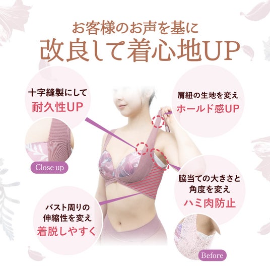 ●「肩紐の支えが弱い」というお声に応え、生地を変更してホールド感がUP