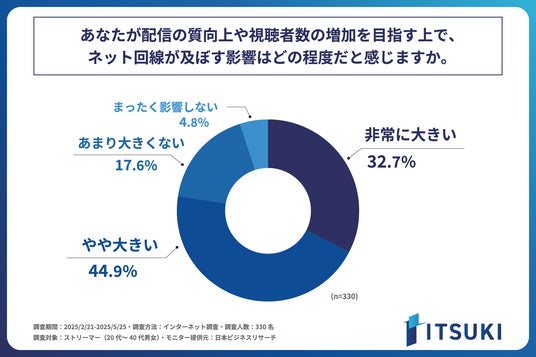 ストリーマーの約8割が、配信の質向上や視聴者数の増加を目指す上で、ネット回線が及ぼす影響は大きいと感じている!株式会社ITSUKIが「ストリーマーのネット環境に関する実態調査」を実施!