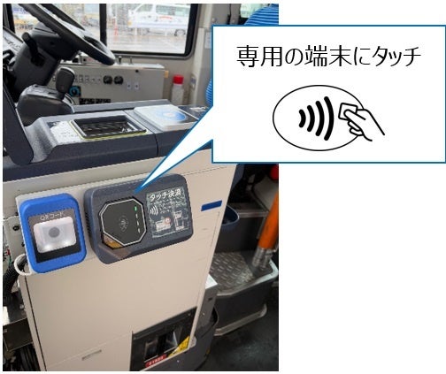 クレジットカード等によるタッチ決済は、三井住友カードが提供する公共交通機関向けソリューション「stera(ステラ) transit(トランジット)」を活用し、タッチ決済対応のカード(クレジット・デビット・プリペイド)や、同カードが設定されたスマートフォン等を、新たに運賃箱に設置する専用の端末にタッチすることでスムーズにご乗車いただけます。