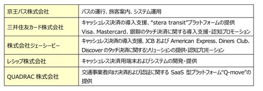 京王バス株式会社(本社:東京都府中市、代表取締役社長:宮坂 周治)、三井住友カード株式会社(本社:東京都江東区、代表取締役社長:大西 幸彦)、株式会社ジェーシービー(本社:東京都港区、代表取締役兼執行役員社長:二重 孝好)、レシップ株式会社(本社:岐阜県本巣市、代表取締役社長:杉本 眞)、QUADRAC株式会社(本社:東京都港区、代表取締役社長:高田 昌幸)は、京王バスが運行する調布営業所管内の路線バスにおいて、クレジットカードやデビットカード等でのタッチ決済を開始することについて、以下の通りお知らせします。