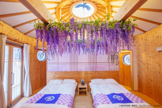 「GRAND CHARIOT 北斗七星135°」の一棟を、アニメ『鬼滅の刃』とコラボレーションし、「極める、柱の美学」をコンセプトに、作品の舞台である大正時代と9名の柱たちをモチーフに装飾した室内で、同作品の世界観を存分に楽しむことができる