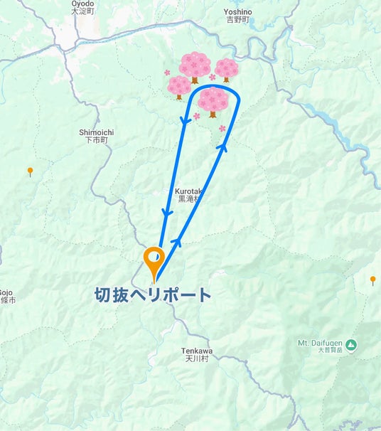 【八尾空港発 奈良天川村切抜ヘリポート着】
