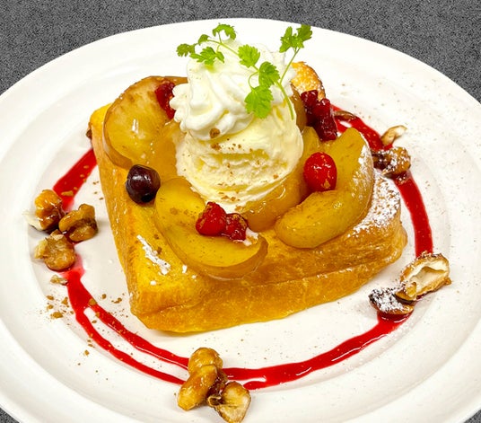 サクふわ食感の厚切りトーストにじゅわっととろける発酵バターの濃厚なコクとはちみつの優しい甘さが広がる『発酵バターとはちみつ』たっぷりの生クリームと濃厚カスタード、フレッシュないちご、甘酸っぱいラズベリー、ブルーベリーをトッピングした『ベリーベリーストロベリー』カリッと焼いたジューシーなベーコンにチーズのコクと卵のまろやかさが相性抜群な『カルボナーラ』シナモン香るリンゴのコンポートと濃厚なバニラアイス、甘酸っぱいベリーが口いっぱいに広がる『林檎とシナモン』トマトのほどよい酸味が甘みを引き立てるソースに旨みたっぷりのベーコン、シャキシャキ食感のピーマン、とろ~りとろけるチーズをたっぷり使った『ナポリタンピザ』なめらかでコクのあるタマゴサラダをのせた、どこか懐かしいほっとする優しい味わいの『たっぷりたまご』軽食やデザートにぴったりの食べ応え抜群なサクふわ食感の厚切りトーストを是非ご賞味ください♪