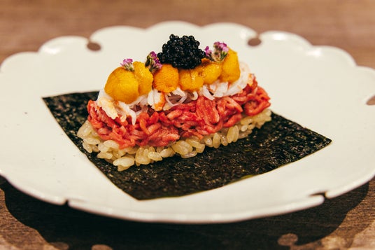 ずわい蟹と生雲丹の和牛手巻き キャビア添え 2貫 5,000円