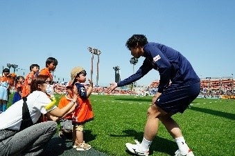 フラッグ行進と選手とハイタッチイベントはSNSで参加者を募集し、当選した7歳から11歳の子どもたち18名がイベントを盛り上げます。本イベント参加の当選連絡をした際には、