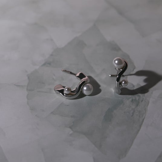 曲線的なシルバーのフープが耳を包み込むようなデザインのピアスです。