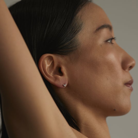 目立ちすぎないサイズながらジルコニアの美しい輝きが品よく、幅広いスタイルに似合うデザインです。
