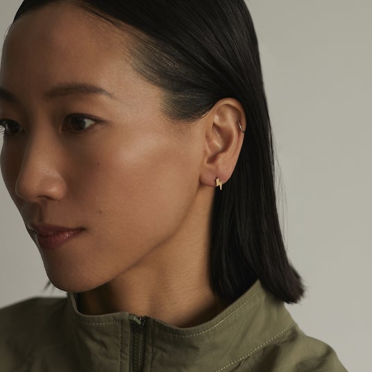 エッジの効いたサンダーボルト(イナズマ)のデザインが印象的なピアス。