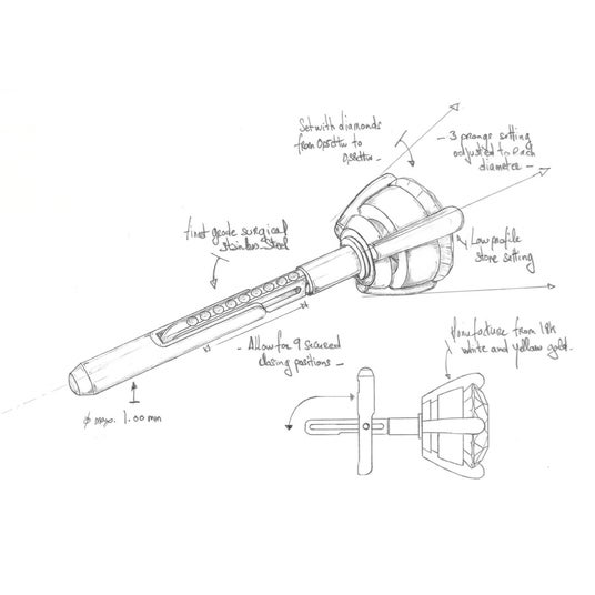 「Baqless」はキャッチを必要とせず、かつフリップしたポスト部分をスライドすることで自由に締め付け具合を調整することができる、今までにない画期的な構造のピアスです。『バックキャッチのないピアス』という意味を込め、