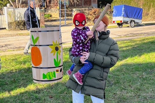 長い冬の中、春の訪れを心待ちにする子どもたちは、仮装して学校や教会に集まり、用意された木樽を順番に叩く「樽たたき」を楽しみます。もともとは不吉の象徴とされた黒猫を樽に入れてたたき、厄を追い払ったのが由来ですが、現在ではお菓子を入れており、樽をたたき割った子どもには王冠が授けられます。