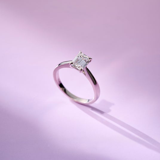 さらにシルバーリングの新デザインとして、Brillarのシルバージュエリーとしては初採用となる<エメラルドカット>のモアサナイトをセッティングしたソリティアリングも登場。モアサナイトならではの内包物の少ない透明感のある輝きを、より気軽にお楽しみいただけます。