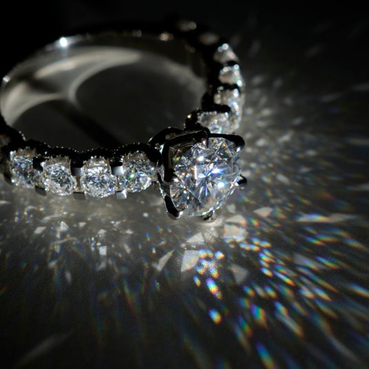 モアサナイトは、ダイヤモンドを超えるファイアと屈折率から「ダイヤモンドの2.5倍輝く(*1)」とも言われる、眩い輝きが特徴の人工宝石です。