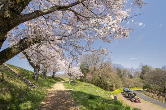 日本さくら名所100選に選ばれ、約600本のソメイヨシノが咲き誇る。夜間ライトアップも実施。