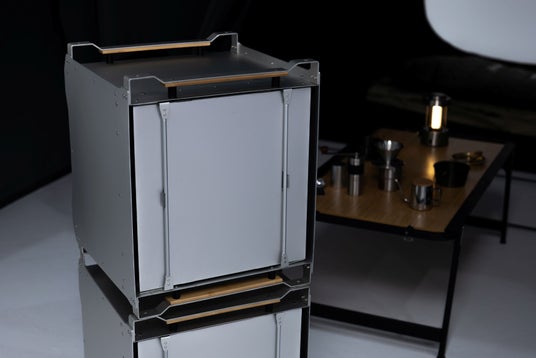 板金パネルを組み合わせたシンプルで無駄のないデザインは、全てが研ぎ澄まされた、まるでインテリアのような佇まいです。新しいパネル構造のクーラーボックスは水平面を多く持っているため、積載や食材の保管、拡張性にとって最も効率的な設計になっています。もちろん、本質である保冷力や耐久性に関しても、第三者機関の試験をはじめとした厳しい検証を実施し、デザイン性と機能性をしっかり両立しています。