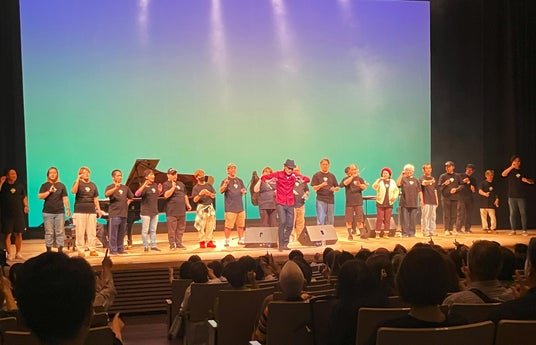 木山氏と障がい者の方が一緒にステージを盛り上げるようす