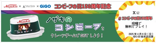 株式会社GENDA GiGO Entertainment(本社:東京都港区 代表取締役社長:二宮 一浩 以下当社)は、GiGOグループの店舗におきまして、「ノザキのコンビーフ」を展開するJFE商事グループの川商フーズ株式会社(代表取締役社長:中村 行盛 本社:東京都千代田区 以下、川商フーズ)と共に、2025年「コンビーフの日(4月6日)」 150周年を記念し、企業コラボイベントを展開します。