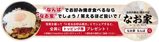 『笑えるほど旨いで!』 お好み焼き・焼きそば「なお家」が、3月22日に大阪・なんばで新店OPEN!これを記念し、CheerDriveでドライブPRキャンペーンを開催!