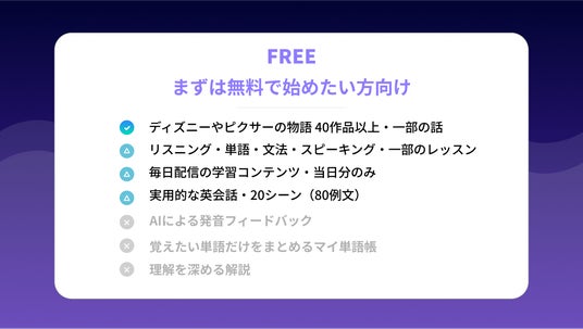 合わせまして新プランの追加と、2025年4月9日(水)には価格の改定を実施させていただきます。今後も皆様の英語力向上に役立つ、良質なサービスを提供してまいりますので、何卒ご理解とご協力を賜りますようお願い申し上げます。