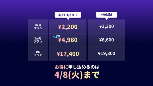※3か月プランは3月24日以降のご提供となります。