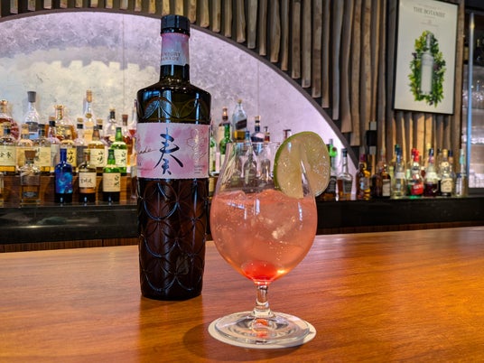 桜リキュールの優雅な香りに包まれた、トニックウォーターで仕上げた一杯。