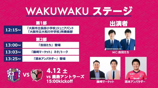 【セレッソ大阪】4/12(土)鹿島戦 WAKUWAKUステージ開催!藤崎マーケット、吉田たちが登場!