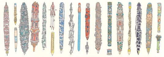 細密な下書きを行い、ペンと水彩を用いて描く作品の数々は、どれも一風変わった独創性のある世界観で多くの人々を魅了しています。