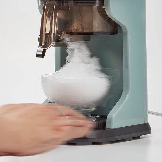 氷をセットしてボタンを押すだけのらくらく電動式で、簡単に操作できます。刃の調節レバーで氷の細かさを無段階に調節することができ、ふんわり口どけなめらかなかき氷から、定番のさらさらとしたかき氷まで、お好みの食感のかき氷を作ることができます。